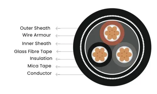 • Bedding: An extruded layer of thermoplastic low smoke zero halogen (LSZH) compound.